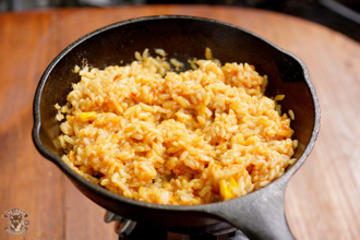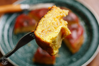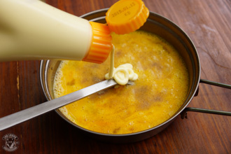 大幅に簡略化した方法で作るインチキオムライスです。美味しさから言えば、チキンライスにスクランブルエッグを載せた方が絶対美味しいです(笑)ま、一種のウケ狙いの料理ではあります。