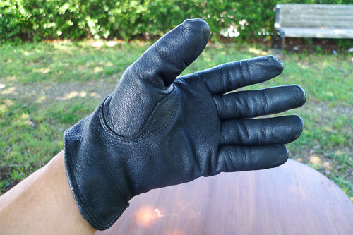 乗車時に使用しているディアスキンのグローブです。春秋は同型で裏フリースの物を愛用しています。真冬は防寒グローブをしていますが、ほぼ4〜10月はこのグローブです。