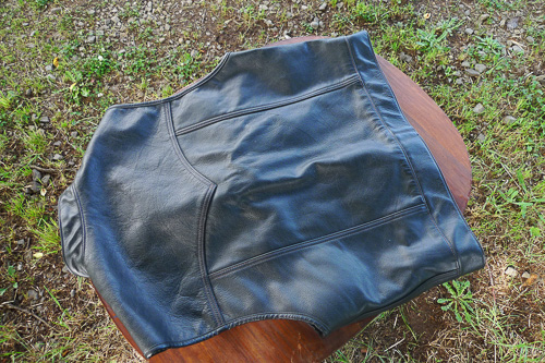 このベストはメンバーのロビンパパの物です。元々は私が95年ごろから着ていたHA LEATHERのベストを、クラブを休止した時にパッチを外して米国在住の友達に預けておいたんですが、今回それを譲ったんでそれまでそいつが着てたこのベストのCOLORSを付け替えてロビンパパに譲ったんですね。